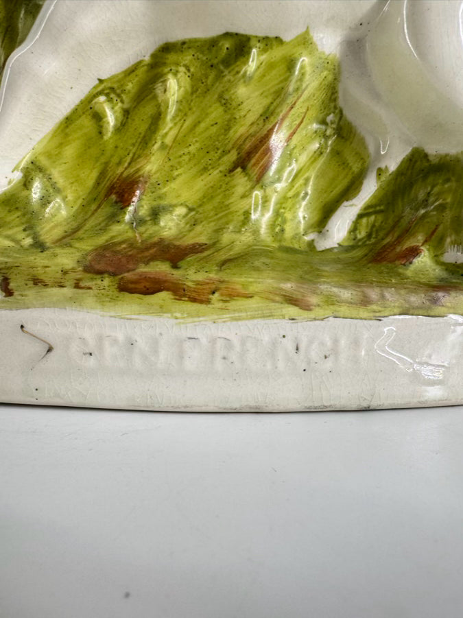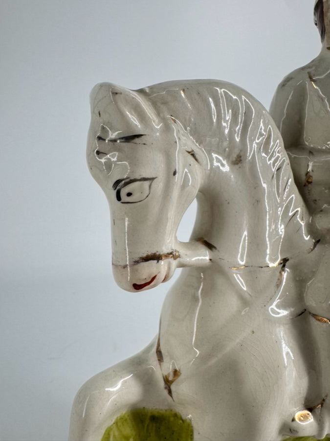 White & Green Ceramic Handpainted Staffordshire General French Figurine