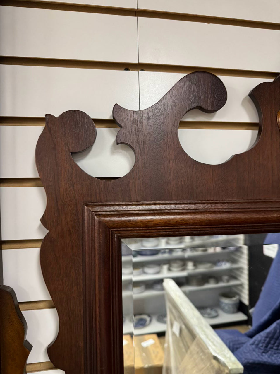VINTAGE Wood Chippendale Beveled Mirror